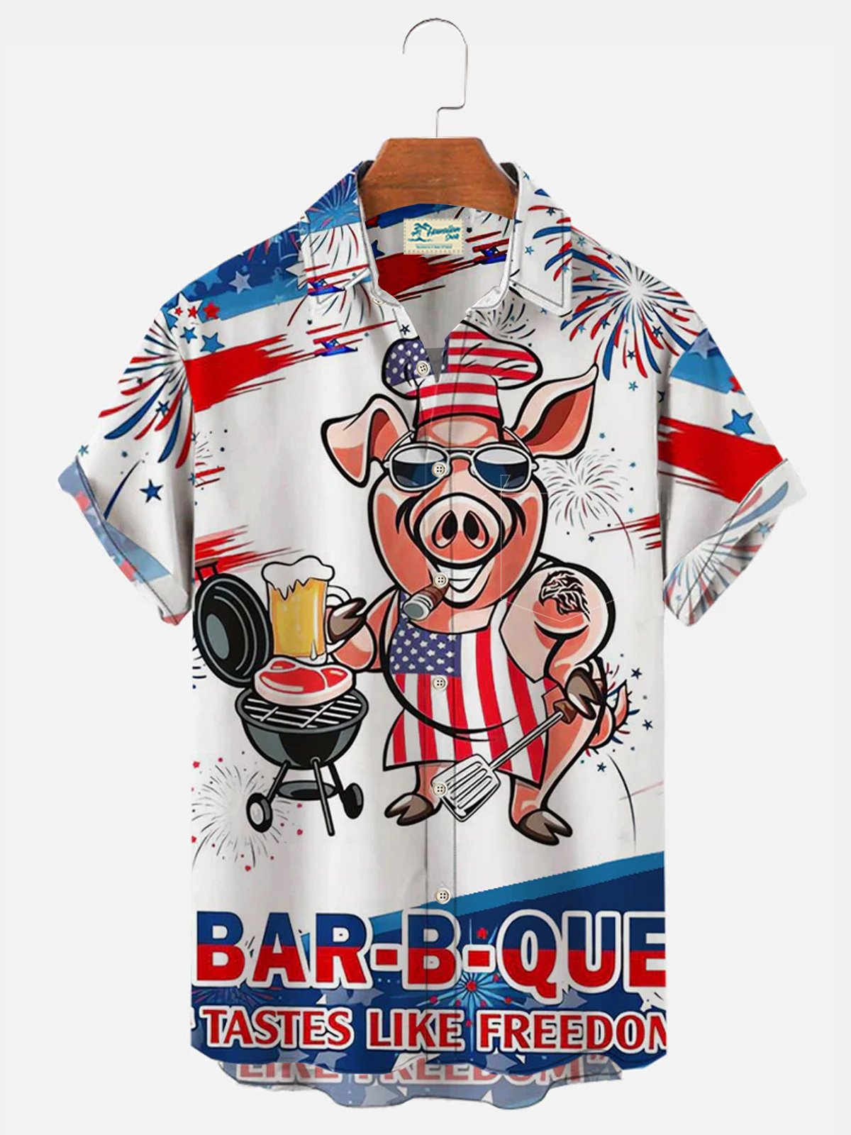 RICHSHE P-Chef American Flag BBQ printed chest pocket casual shirt oversized holiday shirt